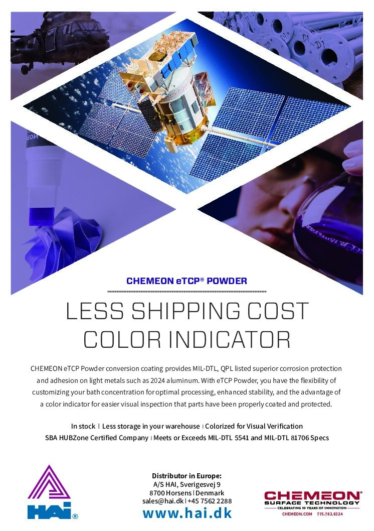 A / S HAI Horsens has entered into a partnership with CHEMEON Surface Technology and we will soon be able to distribute and surface treat with CHEMEON eTCP® on the European market.