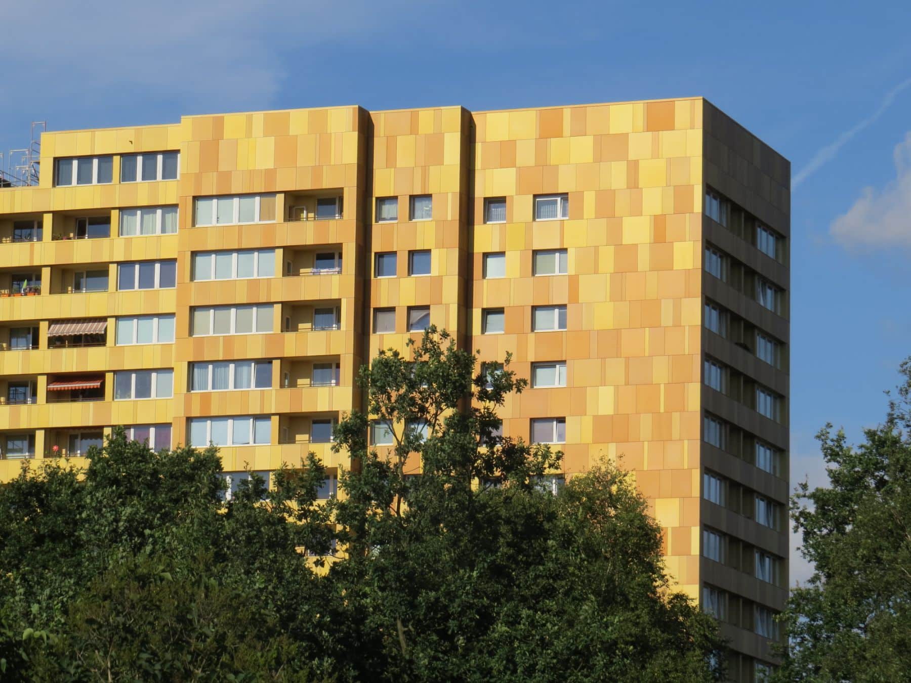 Forester's path, designed by Polyform architects, got a new identity with a new, golden facade through a major renovation project. The property that is from 1970s, is one of Hamburg's largest residential properties. The 14.000 square meter facade has become post-insulated and covered with aluminum sheets, which is anodized in seven different HAI®shades of gold.