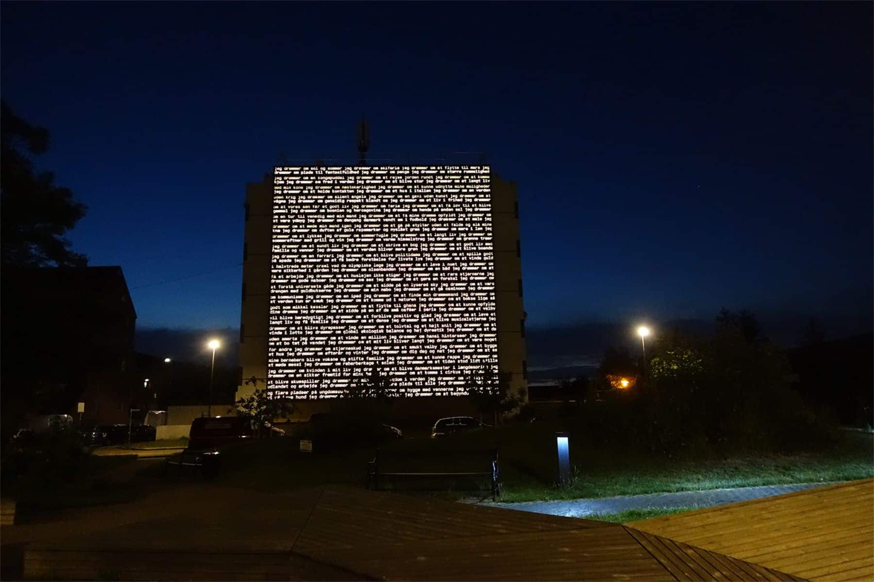 The dream gable is a work of art that is made by Morten Søndergaard. The work is created through questions to the residents of the block of flats around theirs dreams for the future.