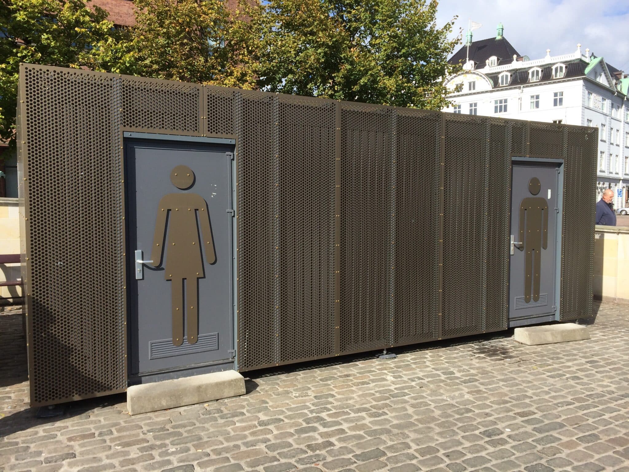 At HAI we make an effort to ensure that the expression and treatment on large as well as small construction projects are of the best quality and appearance. That is why we have treated the toilet at Store Torv in Aarhus in a medium dark bronze colour, which gives the public toilet a clean and metallic look.