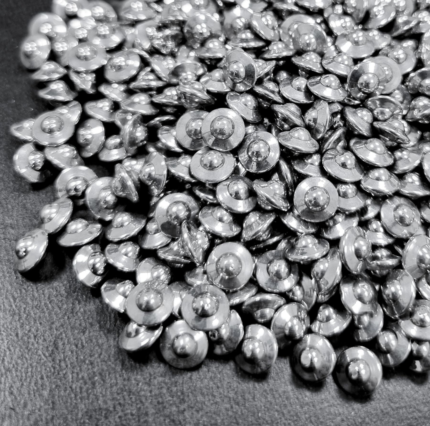 Ball burnishing of items takes place in rotating drums, where the items are mechanically polished with small stainless steel balls or satellites with the addition of sanding paste or a compound powder.